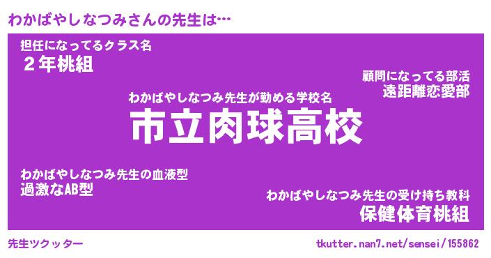 | 胡散臭い通販商品みたいなあだ名 | 『必ず成功するブレスレット…その名も「わかばやしなつみ」』 |