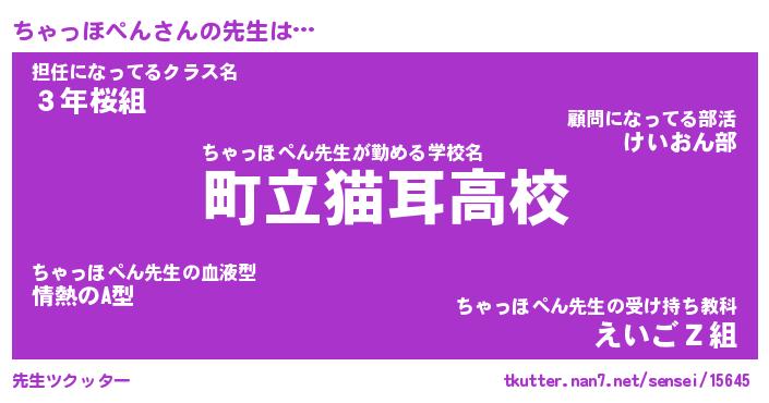 | ヒーロー風カッコイイあだ名 | 『スーパーチャッホペン』『炎刃騎士チャ』 |