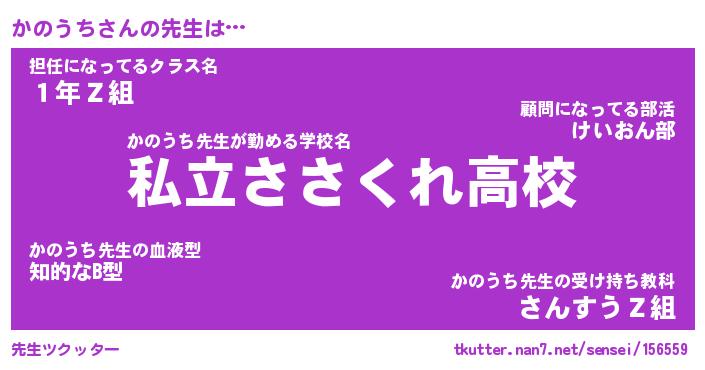 | 意味不明あだ名 | 『ペロリンかのうち』『永久保存かのうち』 |
