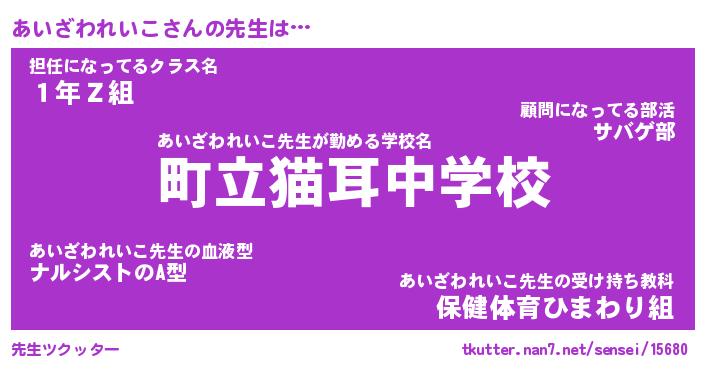 | 意味不明あだ名 | 『ペロリンあいざわれいこ』 |