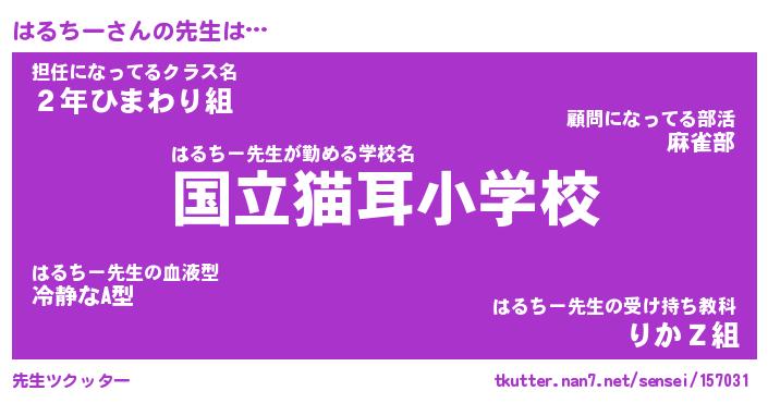 | ファンタジー風あだ名 | 『ハルフェル』『エターナルハルチーー』 |