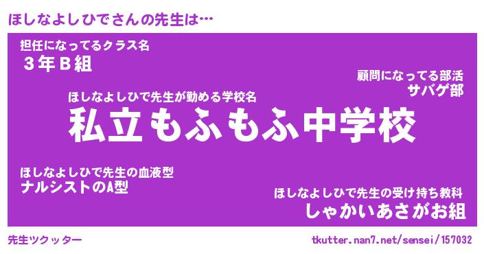 | ヘコむあだ名 | 『ほしにゅー』『酢こんぶ』『ほしを』 |