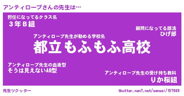 | 男性向けラノベタイトル風あだ名 | 『アンティロープの憂鬱』 |