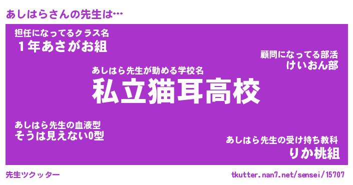 | 男性向けラノベタイトル風あだ名 | 『あしはらの憂鬱』 |