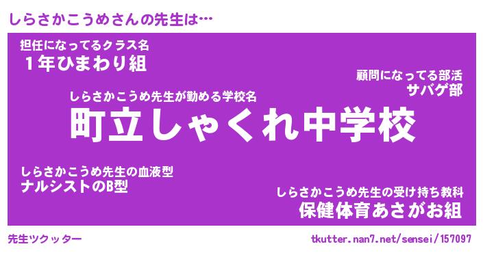 | 伝説のあだ名 | 『封印されしスナイパーしらさかこうめ』 |