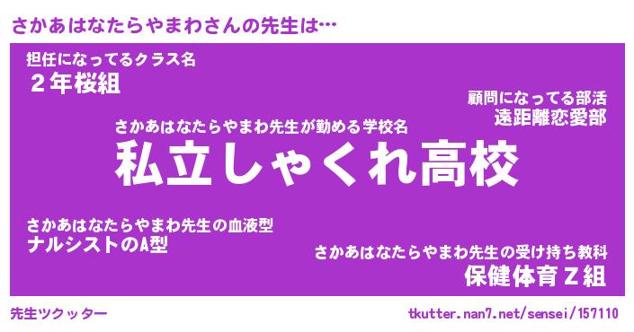 | 伝説のあだ名 | 『伝説のスナイパーさかあはなたらやまわ』 |