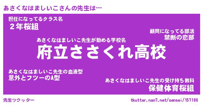 | ポケモン風あだ名 | 『アサチュウ』『アサクダネ』 |