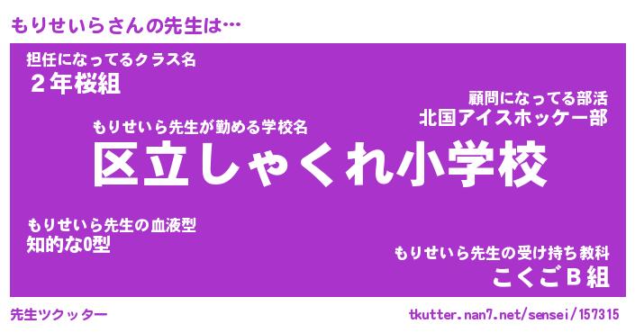 | ヒーロー風カッコイイあだ名 | 『スーパーモリセイラ』『銀牙騎士モリ』 |
