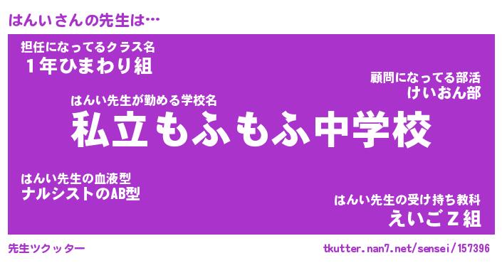| ヘコむあだ名 | 『はんにゅー』『つくし』『はんを』 |
