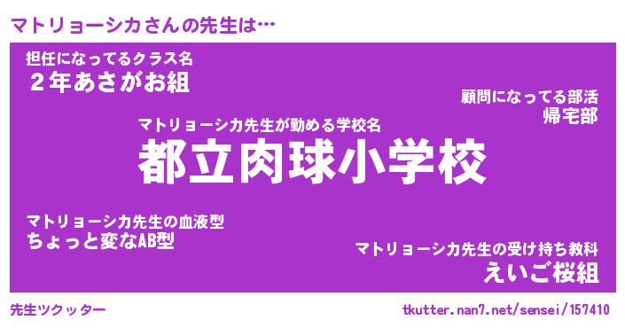 | ヘコむあだ名 | 『マトふぇ~』『なまこ酢』 |