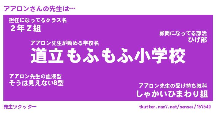| 意味不明あだ名 | 『ペロリンアアロン』『永久保存アアロン』 |