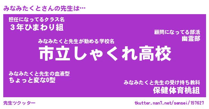 | 伝説のあだ名 | 『伝説のスナイパーみなみたくと』 |
