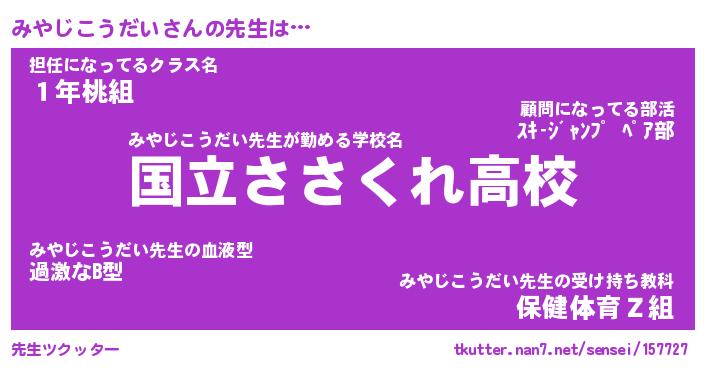 | 伝説のあだ名 | 『伝説のスナイパーみやじこうだい』 |