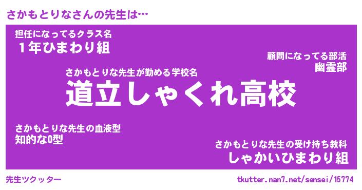 | 伝説のあだ名 | 『不死鳥のスナイパーさかもとりな』 |