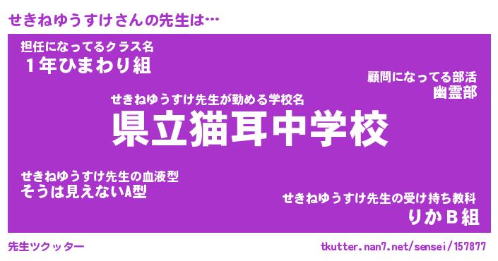 | 伝説のあだ名 | 『不死鳥の竜騎士せきねゆうすけ』 |