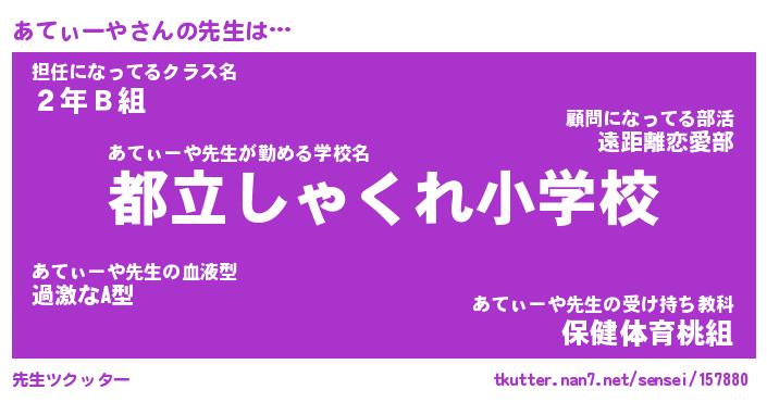 | 伝説のあだ名 | 『不死鳥のスナイパーあてぃーや』 |