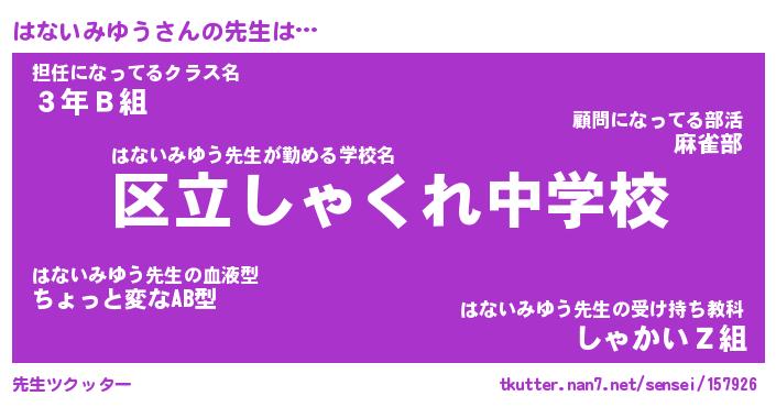 | 伝説のあだ名 | 『封印されしスナイパーはないみゆう』 |