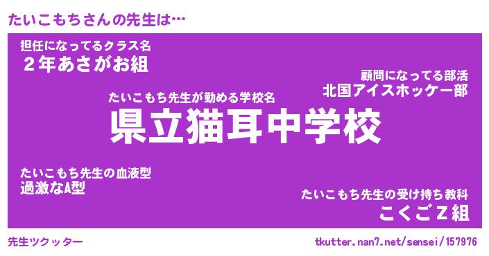 | ファンタジー風あだ名 | 『タイフェル』『エターナルタイコモチー』 |