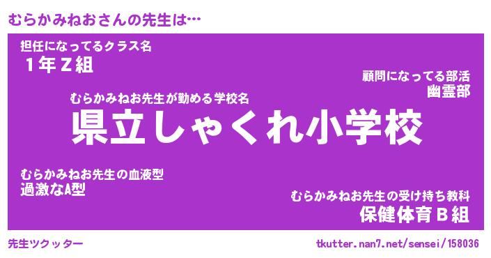 | 肩書あだ名 | 『むらかみねお御曹司』 |