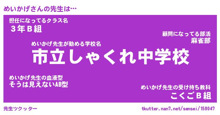 | 肩書あだ名 | 『めいかげ御曹司』『めいかげ総理大臣』 |