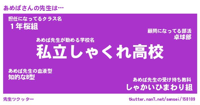 | ヒーロー風カッコイイあだ名 | 『スーパーアメバ』『ウルトラあめばマン』 |