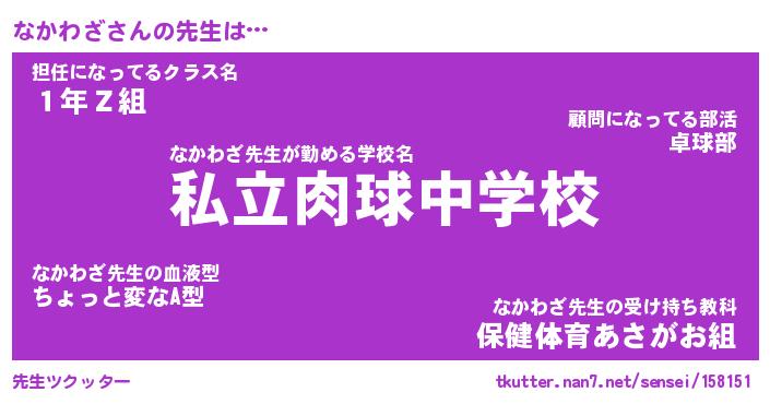 | 意味不明あだ名 | 『ペロリンなかわざ』『永久保存なかわざ』 |