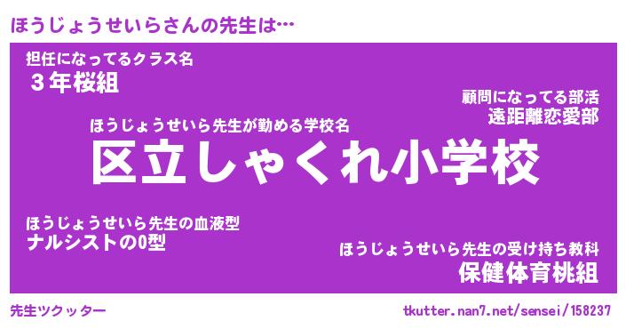 | 伝説のあだ名 | 『封印されしスナイパーほうじょうせいら』 |