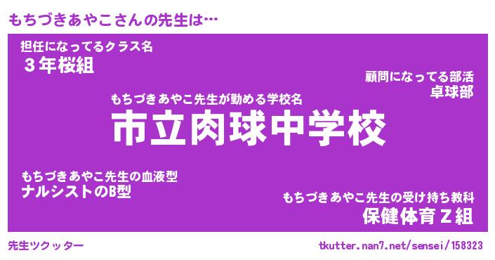 | ヘコむあだ名 | 『もちふぇ~』『豆乳』『もちっぺ』 |
