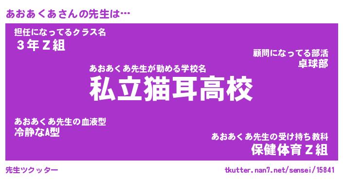 | ファンタジー風あだ名 | 『アオフェル』『エターナルアオアクアー』 |