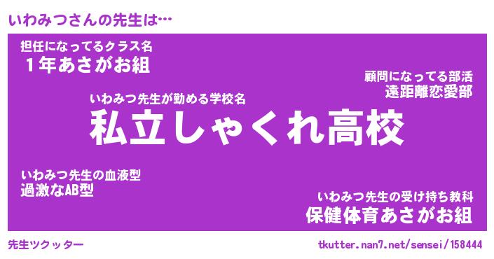 | ヘコむあだ名 | 『いわっふぃ~』『つくし』 |