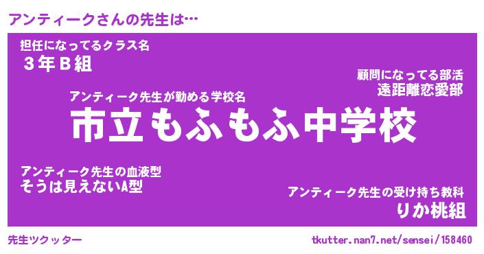 | 肩書あだ名 | 『アンティーク店長』『アンティーク先生』 |