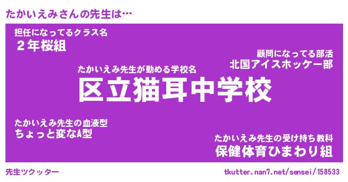 | ファンタジー風あだ名 | 『タカフェル』『エターナルタカイエミー』 |