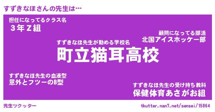 | ファンタジー風あだ名 | 『スズフェル』『エターナルスズキナホー』 |