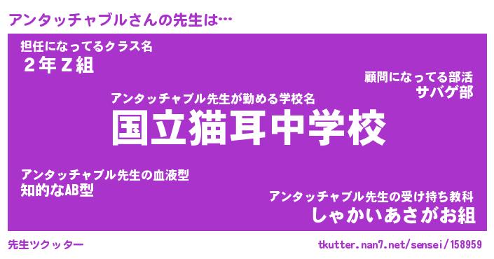 | 男性向けラノベタイトル風あだ名 | 『アンタッチャブルの憂鬱』 |