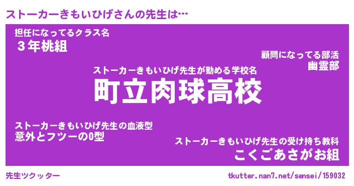| 欧米人風あだ名 | 『マイケルストーカーきもいひげ』 |
