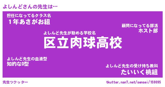| 意味不明あだ名 | 『ペロリンよしんど』『永久保存よしんど』 |