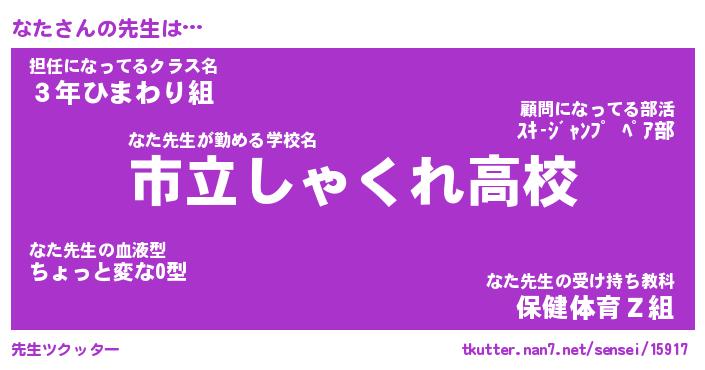 | 伝説のあだ名 | 『伝説のスナイパーなた』 |