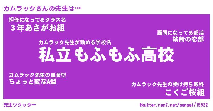 | ファンタジー風あだ名 | 『カムフェル』『エターナルカムラックー』 |