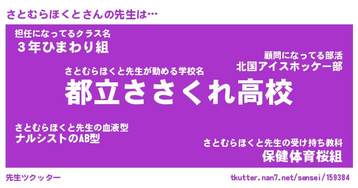 | 男性向けラノベタイトル風あだ名 | 『さとむらほくとの憂鬱』 |
