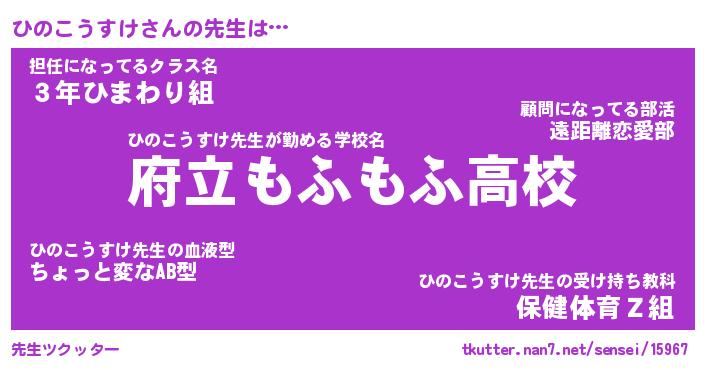 | ヒーロー風カッコイイあだ名 | 『スーパーヒノコウスケ』『幻影騎士ヒノ』 |