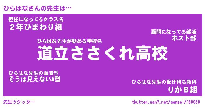 | 意味不明あだ名 | 『ペロリンひらはな』『永久保存ひらはな』 |