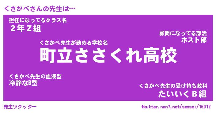 | ヒーロー風カッコイイあだ名 | 『スーパークサカベ』『魔戒騎士クサ』 |