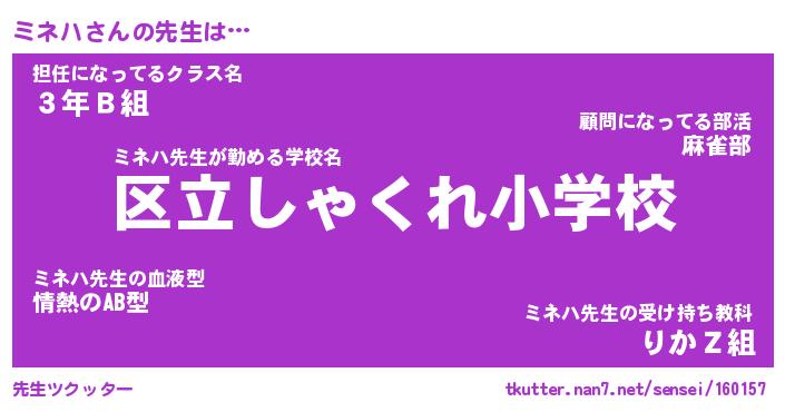 | ヘコむあだ名 | 『ミネっふぃ~』『レバニラ』 |