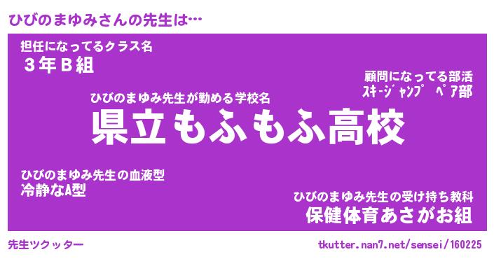 | 意味不明あだ名 | 『ペロリンひびのまゆみ』 |