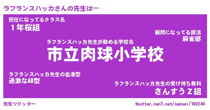 | 意味不明あだ名 | 『ペロリンラフランスハッカ』 |