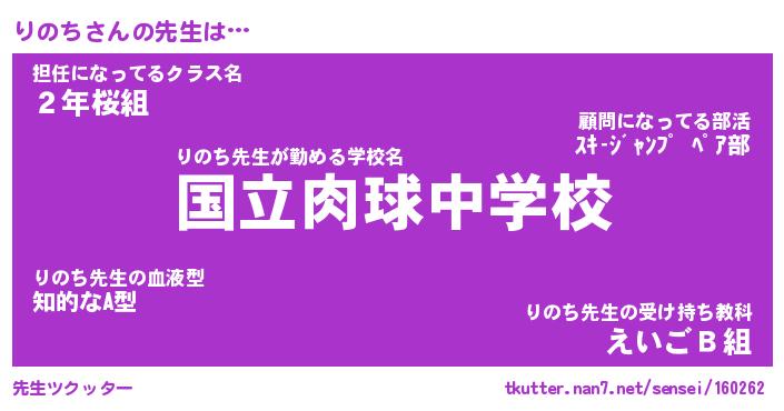| ヘコむあだ名 | 『りのふぇ~』『酢こんぶ』 |