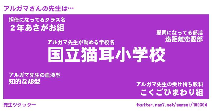 | ヘコむあだ名 | 『アルにー』『なまこ酢』『アル太郎』 |