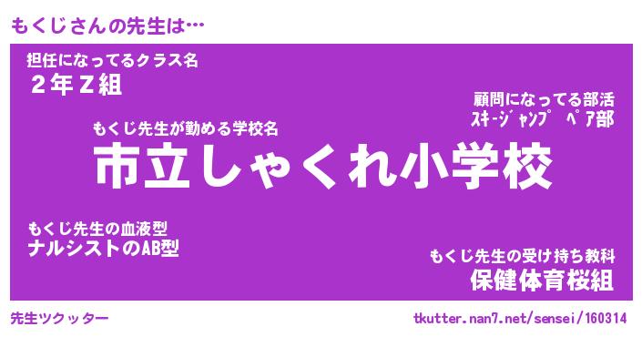 | ヒーロー風カッコイイあだ名 | 『スーパーモクジ』『ウルトラもくじマン』 |