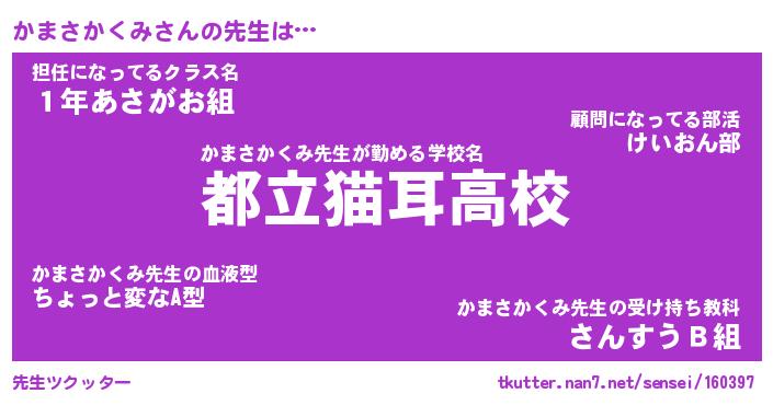 | ヘコむあだ名 | 『かまにー』『つくし』『かま太郎』 |