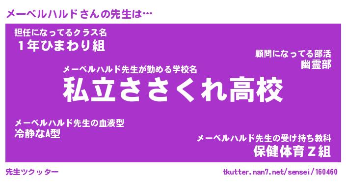 | 男性向けラノベタイトル風あだ名 | 『メーベルハルドの憂鬱』 |